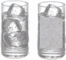 6. 炎热的夏天,玻璃杯中装有水和冰块,如图所示,左边杯子里的冰块压着杯底,右边杯子里的冰块漂浮在水面。若不考虑水的蒸发,当两个杯中的冰块全部熔化时,杯中水面和初始时刻杯中水面相比是否会发生变化?请你尝试用公式推导,并准备材料用具加以验证。