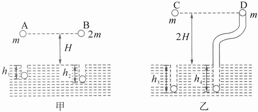 4. 在探究“物体重力势能的大小与哪些因素有关”时,让A、B两个质量不同的铅球从沙坑表面上方由静止释放,铅球落下后陷入沙子中,实验情景如图所示。