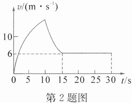 2. 低空跳伞是一种极限运动。一名跳伞运动员背着伞包从某高层建筑顶层跳下,且一直沿竖直方向下落,整个运动过程的v-t图像如图所示,10s末时打开了降落伞。下列说法正确的是(
