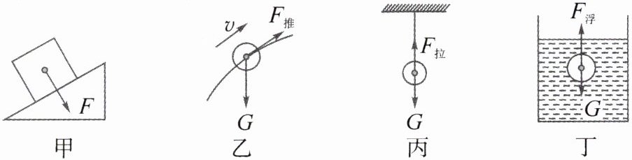 C.图丙:悬挂在天花板上静止的小球受力示意图
