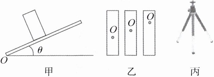 实验1:将外形、重心相同,质量不同的物体依次放在木板上,分别记下让它们刚好翻倒时,木板转过的角度θ的大小(如图甲所示)。