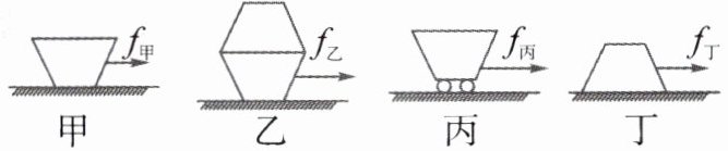 2. 如图所示,有两个相同的梯形体,它们在力的作用下,以下列四种方式沿相同的水平面运动,下列对不同情况下物体所受摩擦力的比较,正确的是(