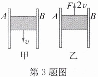 3. 质量为m的物体夹在竖直轨道上,刚好能以v的速度沿竖直轨道匀速下滑(如图甲所示);为了使该物体以2v的速度沿轨道竖直匀速上滑(如图乙所示),则需要对该物体施加的竖直向上的力$F= $