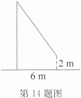14. 如图,小华将升旗的绳子拉到竖直旗杆的底端,绳子末端刚好接触地面,然后将绳子末端拉到距离旗杆$6m$处,此时绳子末端距离地面$2m$,则绳子的总长度为