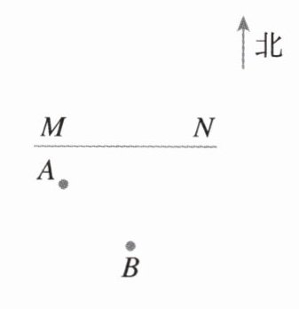 20. 如图,一个牧童在小河$MN南4km的A$处牧马,而他正位于他的小屋$B的西8km$,北$7km$处,他想把他的马牵到小河边去饮水,然后回家。他要完成这件事情所走的最短路程是多少?