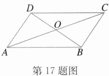 17. 如图,$□ ABCD的周长为30\mathrm{cm}$,它的对角线$AC和BD相交于点O$,且$\triangle AOB的周长比\triangle BOC的周长大5\mathrm{cm}$,则$AB= $
