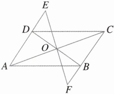 18. 如图,$□ ABCD的对角线AC$,$BD相交于点O$,$EF经过点O与AD延长线交于点E$,与$CB延长线交于点F$.求证:$OE= OF$.