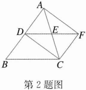 2. 如图,在$\triangle ABC$中,$AC= BC$,$D$,$E分别是边AB$,$AC$的中点. 将$\triangle ADE绕点E旋转180^{\circ}得\triangle CFE$,则四边形$ADCF$一定是 (