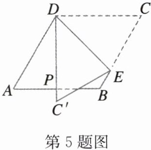 5. 如图,在菱形纸片$ABCD$中,$\angle A= 60^{\circ}$,折叠菱形纸片$ABCD$,使点$C落在DP$($P为AB$中点)所在的直线上,得到经过点$D的折痕DE$,则$\angle DEC$的大小为 (