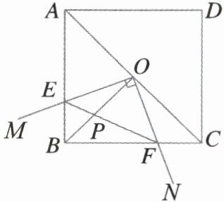 7. 如图,在正方形$ABCD$中,$O为对角线AC$的中点,过点$O作射线OM$,$ON分别交AB$,$BC于点E$,$F$,且$\angle EOF= 90^{\circ}$,$BO$,$EF交于点P$. 则下列结论: