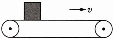 16. 有一个足够长的水平传送带,当传送带匀速运动时,从传送带的上方轻轻向传送带上释放一个木块,如图所示。木块在传送带上先加速后匀速运动,请解释这个现象。