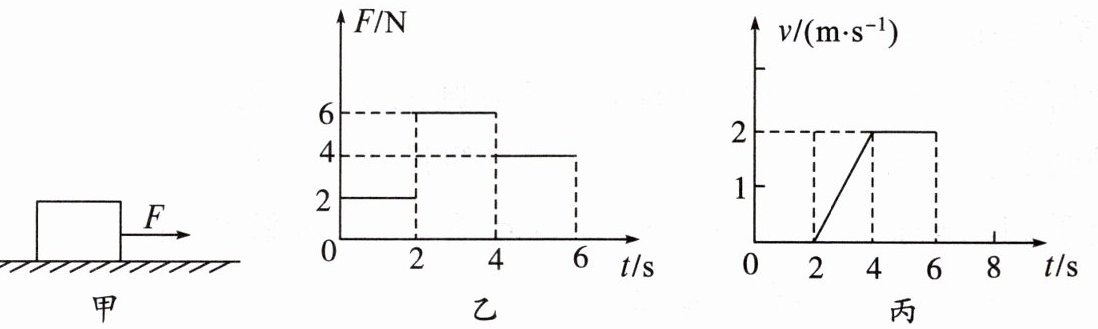 14. 如图甲所示,放在水平地面上的物体,受到方向不变的水平推力$F$的作用,$F$的大小与时间$t$的关系和物体运动速度$v$与时间$t$的关系如图乙、丙所示。由图像可知当$t = 1s$时,物体处于