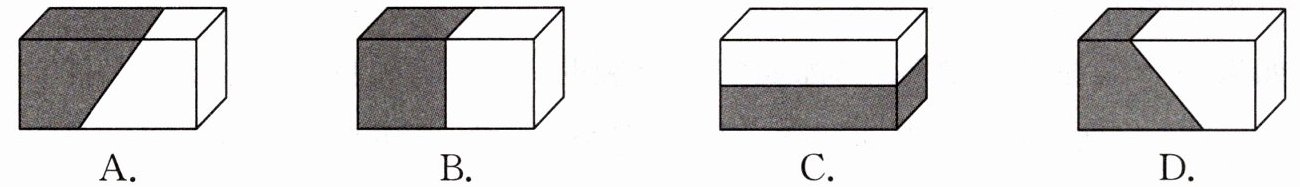 10. 如图所示,将质量分布均匀的长方体置于水平桌面上,现分别按照图示的方法切去一半,则剩余阴影部分对桌面压强最小的是 (