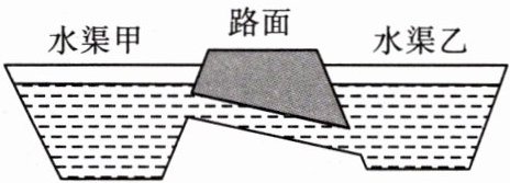 7. 如图所示,公路两侧的甲、乙两条水渠由路面下的倾斜涵洞相连,两渠水面相平。下列关于涵洞水流方向说法正确的是 (