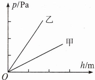15. 右图是甲、乙两种液体内部的压强与深度关系的图像。设液体甲、乙的密度分别为ρ甲、ρ乙,则ρ甲、ρ乙的关系是 (