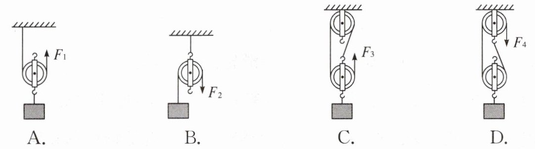 4. 如图所示,用机械提起同一重物,不考虑绳重和轴摩擦,其中最省力的是(滑轮所受的重力相同,且等于提升物体所受的重力)