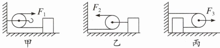 3. 如图所示,分别拉同一个物体沿同一水平面做匀速直线运动,所用的拉力分别是F₁、F₂、F₃,它们的大小关系是