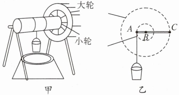 11. 明代宋应星在《天工开物》中记载的农业生产汲水装置——辘轳,沿用至今。图甲是一种辘轳,由具有共同转动轴的大轮和小轮组成,可视为不等臂杠杆,为方便提水,它是按照