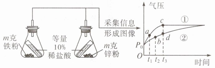 D. 对比c、d两点,说明锌的活动性比铁强