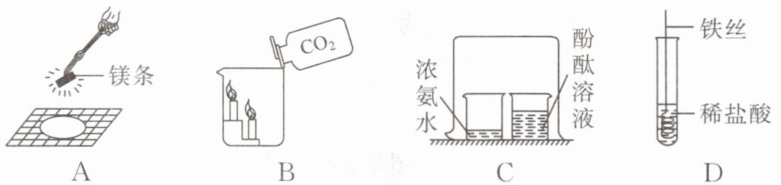 B. 将二氧化碳气体慢慢倒入烧杯中,下层蜡烛先熄灭,上层蜡烛后熄灭