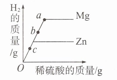 (2)c点时,锌和镁都与稀硫酸发生了反应,且此时产生氢气的质量相等(或此时锌和镁都有剩余,合理即可)。