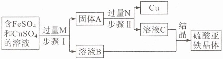 (3)铜的回收:某工厂的废水经预处理后得到含 $ {FeSO_{4}} $ 和 $ {CuSO_{4}} $ 的溶液。为了减少污染并促进废物利用,工厂设计了以下流程回收 Cu 和 $ {FeSO_{4}} $。
