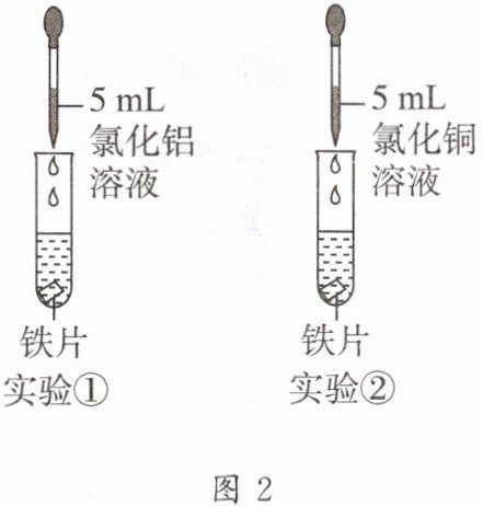 【进行实验】如图 2,分别取两片形状、大小完全相同的铁片放在试管中,滴加等量的氯化铝溶液和氯化铜溶液。