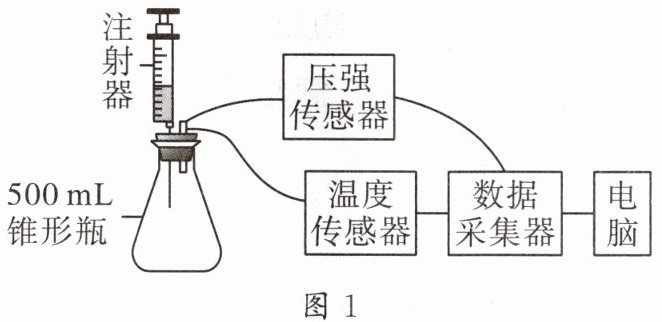 ③立即塞紧橡胶塞,橡胶塞上已插有一支装有 5mL 稀盐酸的注射器及传感器;