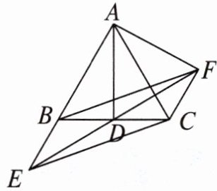- 一组对边平行且相等的四边形是平行四边形,$BE// CF$且$BE = CF$($AB = BE$,$AB = CF$),所以四边形$BECF$是平行四边形。