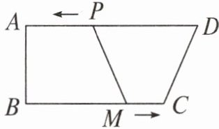 10. 如图,在四边形 ABCD 中,$∠A=∠B=90^{\circ },AD=10cm,BC=8cm$,点 P 从点 D 出发,以 1 cm/s 的速度向点 A 运动,同时点 M 从点 B 出发,以相同的速度向点 C 运动,当其中一个点到达端点时,两个点同时停止运动.设运动时间为 t(单位:s),下列结论正确的是 (