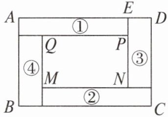 16. 如图,标号为①②③④的矩形不重叠地围成矩形 PQMN.已知①和②能够重合,③和④能够重合,这四个矩形的面积都是 5,$AE=a,DE=b$,且$a>2b$.