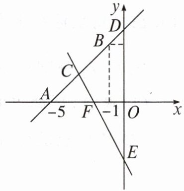 18. 如图,直线$y = kx + b$经过点$A(-5,0)$,$B(-1,4)$,与$y$轴交于点$D$. 直线$CE:y = -2x - 4$与直线$AB$交于点$C$,与$y$轴交于点$E$.