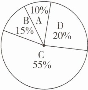 9. 某超市销售A,B,C,D四种矿泉水,它们的单价依次是5元、3元、2元、1元.某天的销售情况如图所示,则这天销售的矿泉水的平均单价是 (