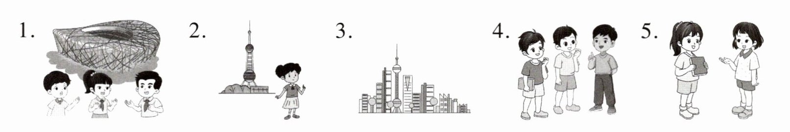 二、Miss Green 在和新朋友们交流。选出与图片相对应的句子。