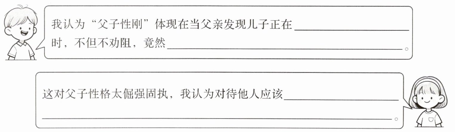 4. 小华和文文在阅读这篇小古文后展开了讨论。请你把下面的对话补充完整。