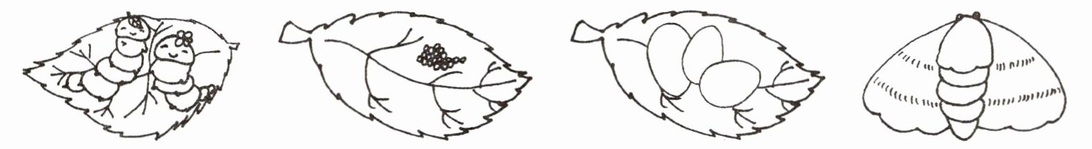 2. 下面的图片分别是哪个生长阶段的蚕? 请把对应的字母写在括号里。