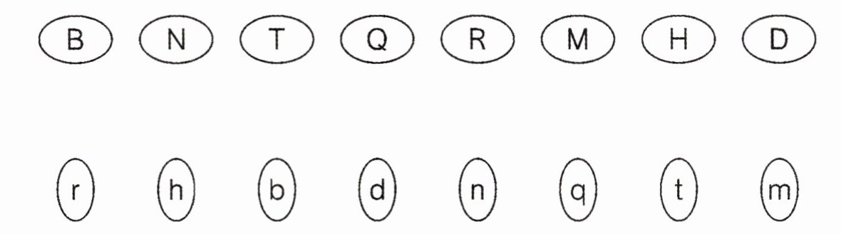B—b,N—n,T—t,Q—q,R—r,M—m,H—h,D—d
