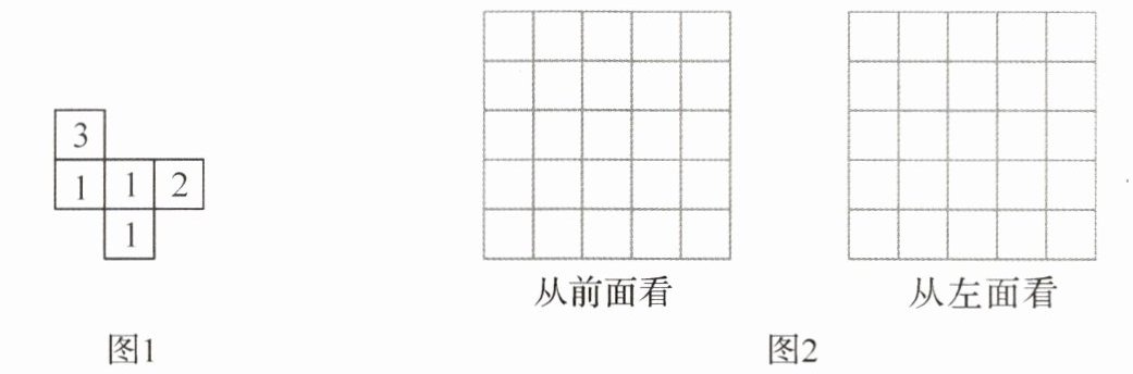 图1是从上面看一个几何体得到的平面图形,方格中的数字表示该位置的小正方体的个数。请你在图2的方格纸中分别画出这个几何体从正面和左面看到的图形。