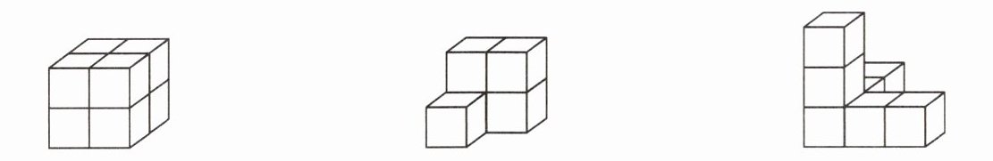 下列各几何体是用棱长 1 cm 的小正方体拼成的,分别写出它们的体积。