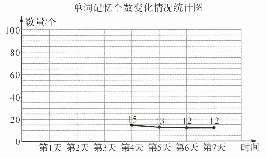 (2)从第( )天到第( )天遗忘得最快,从第( )天到第( )天遗忘得最慢。七天后,记住的数量是第 1 天记住的单词总数的$\frac{(\space)}{(\space)}$。