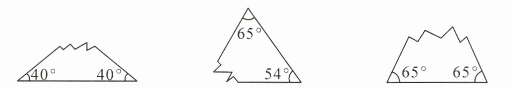 二、下面是三块三角形玻璃打碎后留下的碎片,它们原来各是什么三角形?