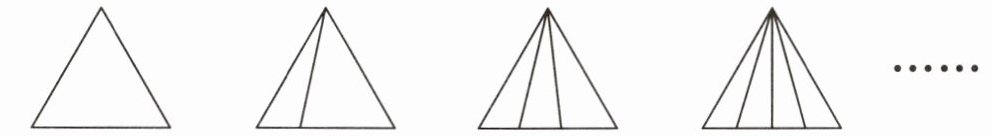 1 个、3 个、6 个、10 个;三角形内加这样的线 n 条,就有$\frac{(n + 1)(n + 2)}{2}$个三角形。