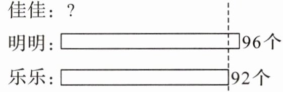6. 右图是佳佳、明明、乐乐一分钟拍球个数情况统计图,已知明明拍了 96 个,乐乐拍了 92 个,虚线处是三人拍的平均个数,佳佳拍球成绩是(