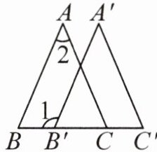 9. 如右图,三角形ABC是等腰三角形,将它向右平移6cm,得到三角形$A'B'C'$。如果$B'C= 8cm$,那么$B'C'= $(