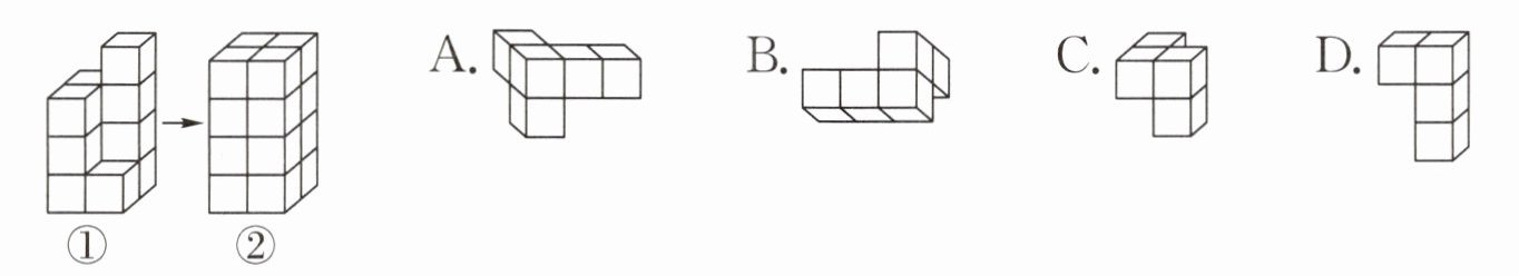 下面的物体都由小正方体组成,其中能和图①一起拼成图②的物体是(