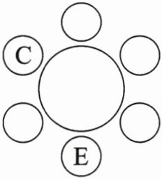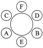8. (★★★★★)有A、B、C、D、E、F六人围一张圆桌而坐,已知E与C相隔一人并坐在C的右边(如图),D坐在A的对面,B与F相隔一人并坐在F的左边,F与A不相邻。试确定A、B、D、F的位置。