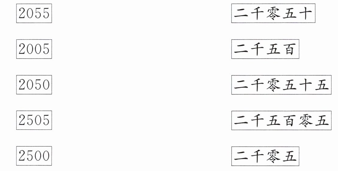 【答案】:$2055$连二千零五十五;$2005$连二千零五;$2050$连二千零五十;$2505$连二千五百零五;$2500$连二千五百。
