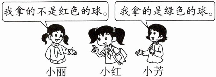 (2)已知小芳拿的是绿色的球,还剩下红色和黄色的球。又因为小丽拿的不是红色的球,所以小丽拿的是黄色的球,那么小红拿的就是红色的球。