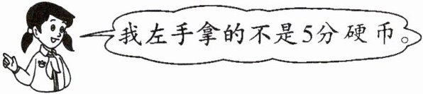 (1)小梅两只手分别拿着2分硬币和5分硬币。