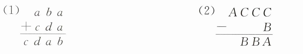 下面各题中不同的字母代表不同的数字$,$当它们代表什么数字时$,$算式成立$?$